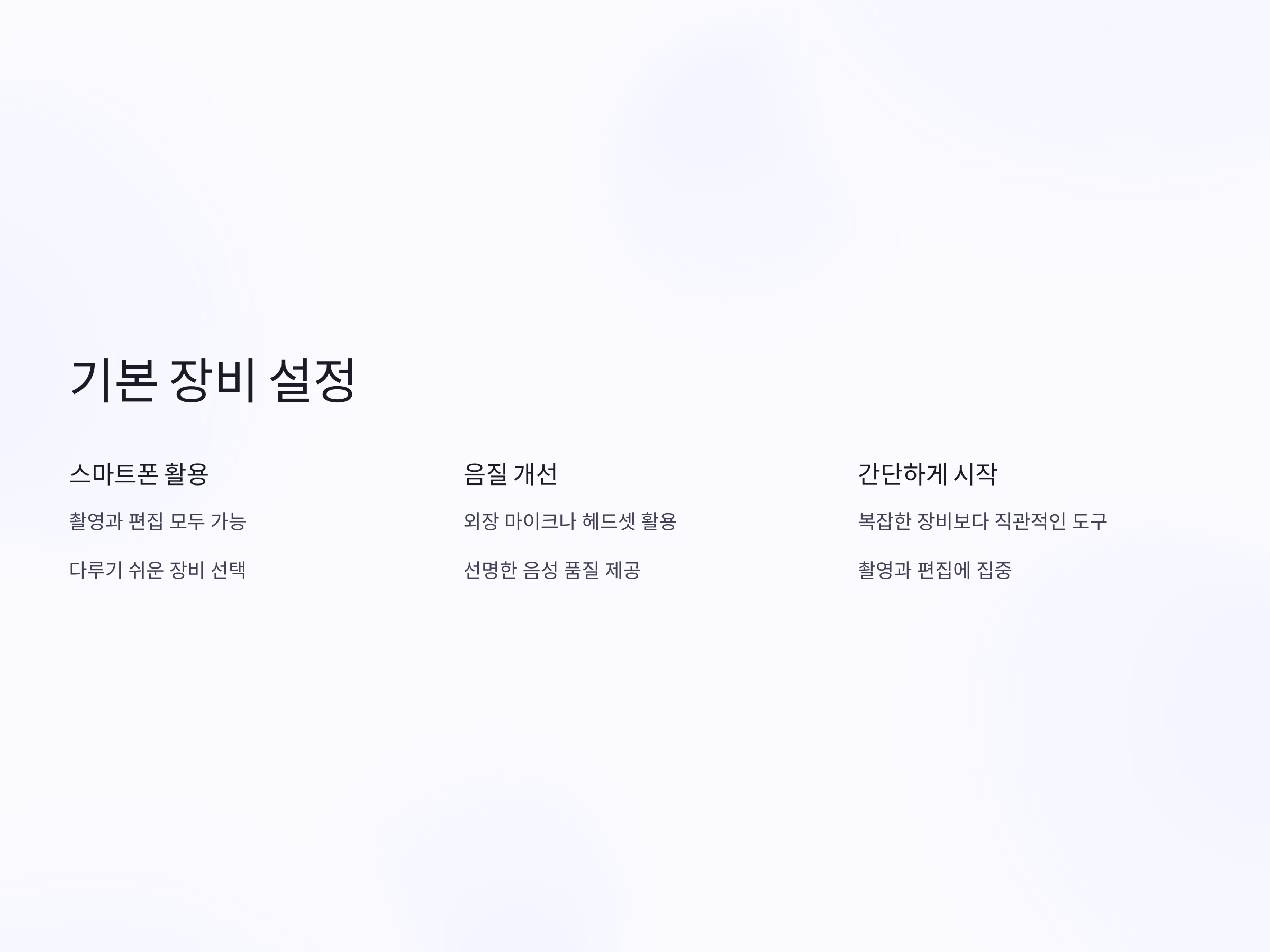 카메라와 마이크: 기본 장비 설정