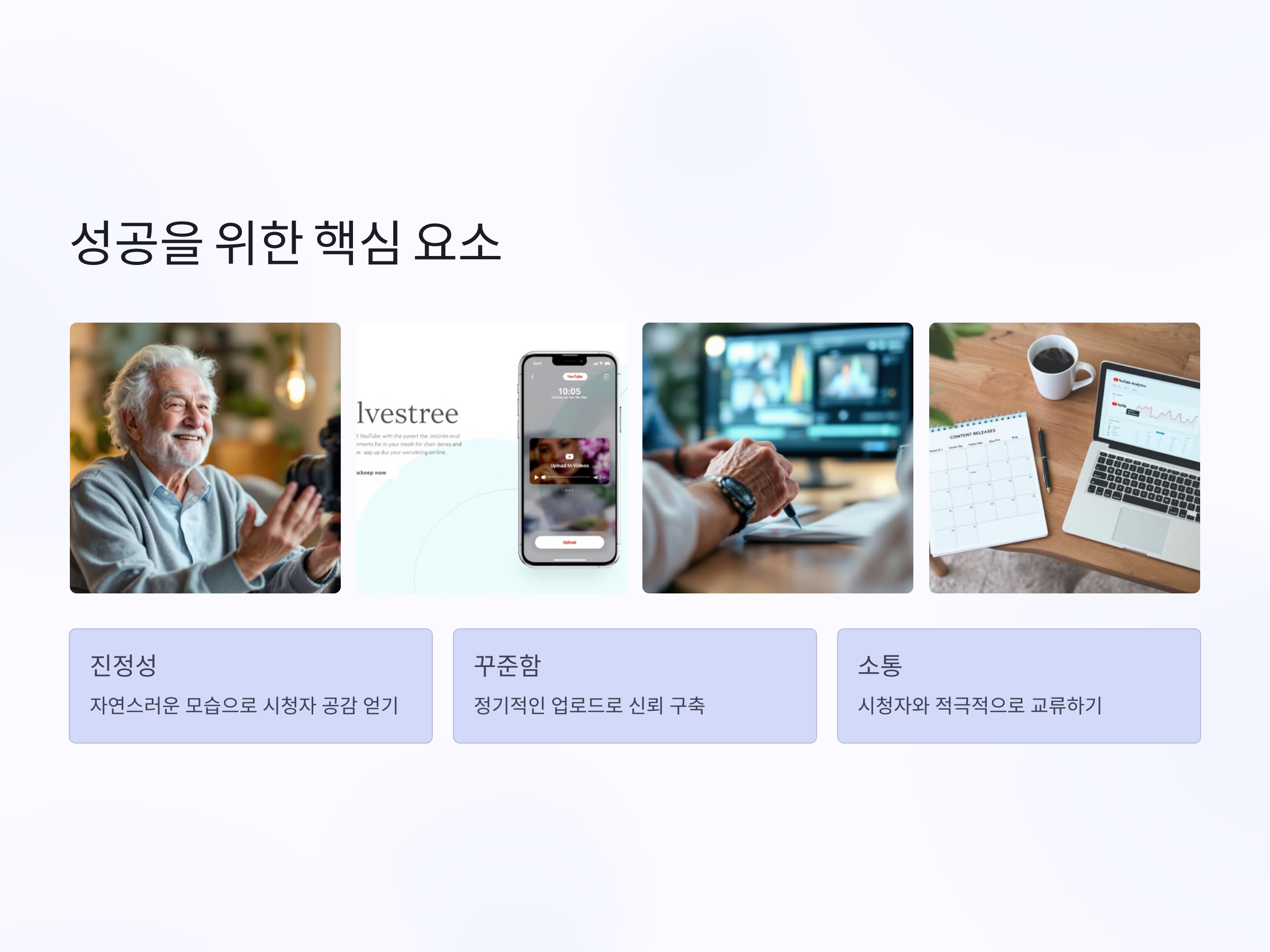 70대에도 유튜브를 운영하며 성공할 수 있다는 사실을 아시나요? 나이에 관계없이 누구든지 유튜브를 통해 자신의 경험과 지식을 공유하고, 새로운 도전을 할 수 있습니다. 이제는 유튜브가 단순한 젊은 세대의 놀이터를 넘어, 다양한 연령층의 콘텐츠 생산자들이 활발히 활동하는 플랫폼으로 자리 잡았습니다. 70대에도 유튜브를 통해 자신만의 콘텐츠를 만들어가고 싶은 분들을 위해, 유튜브 운영에 필요한 기본적인 전략과 실천 팁을 알려드리겠습니다.