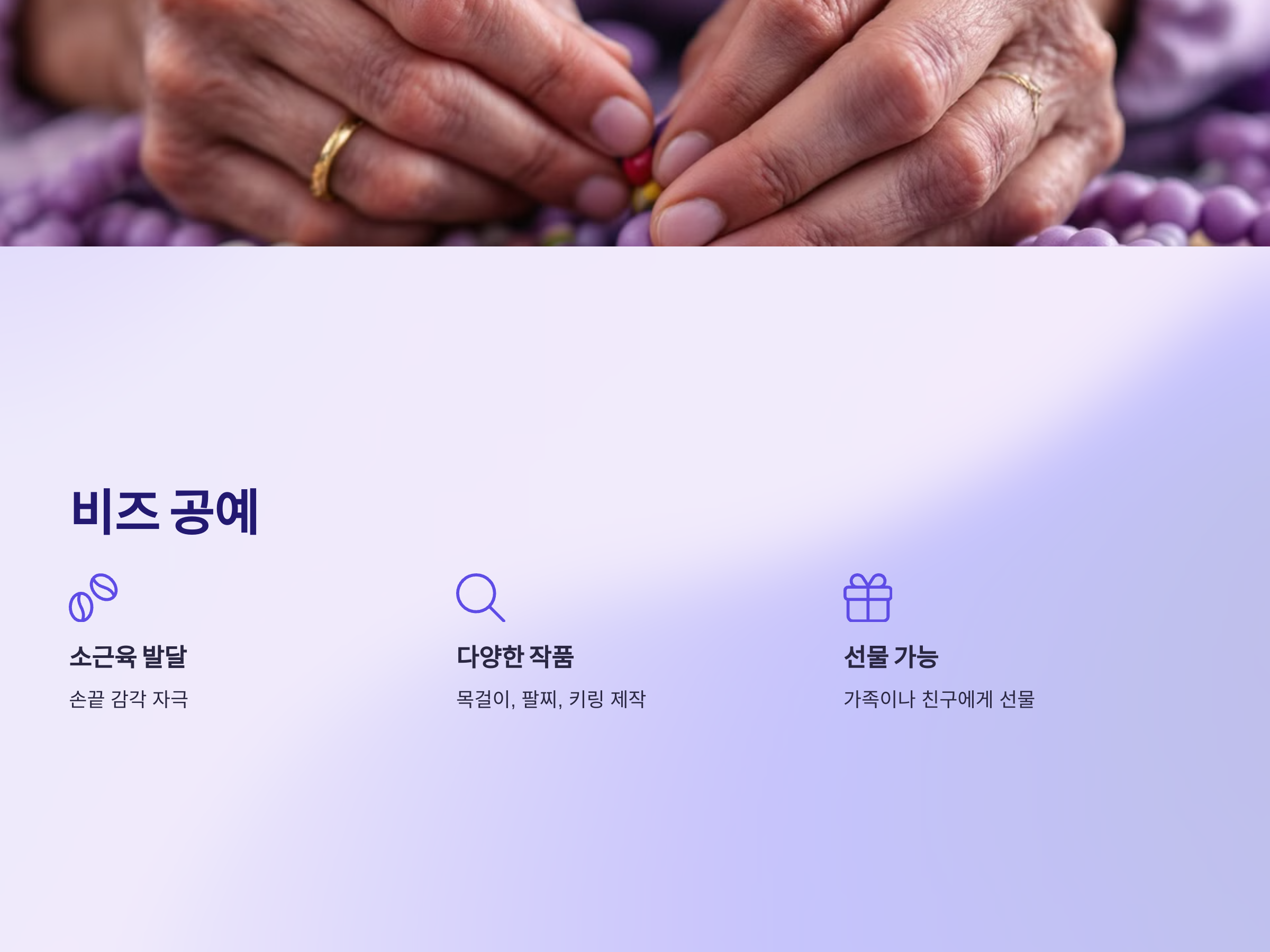 비즈 공예는 실버 세대에게 특히 추천할 만한 이유가 몇 가지 있습니다. 첫째, 시각적으로 아름다운 결과물을 만들 수 있어 성취감을 느낄 수 있습니다. 둘째, 세밀한 작업이 필요한 만큼 집중력과 인내심을 기르는 데 도움이 됩니다. 마지막으로, 완성된 작품을 가족이나 친구에게 선물하거나 판매할 수도 있어 경제적 보람까지 얻을 수 있습니다.