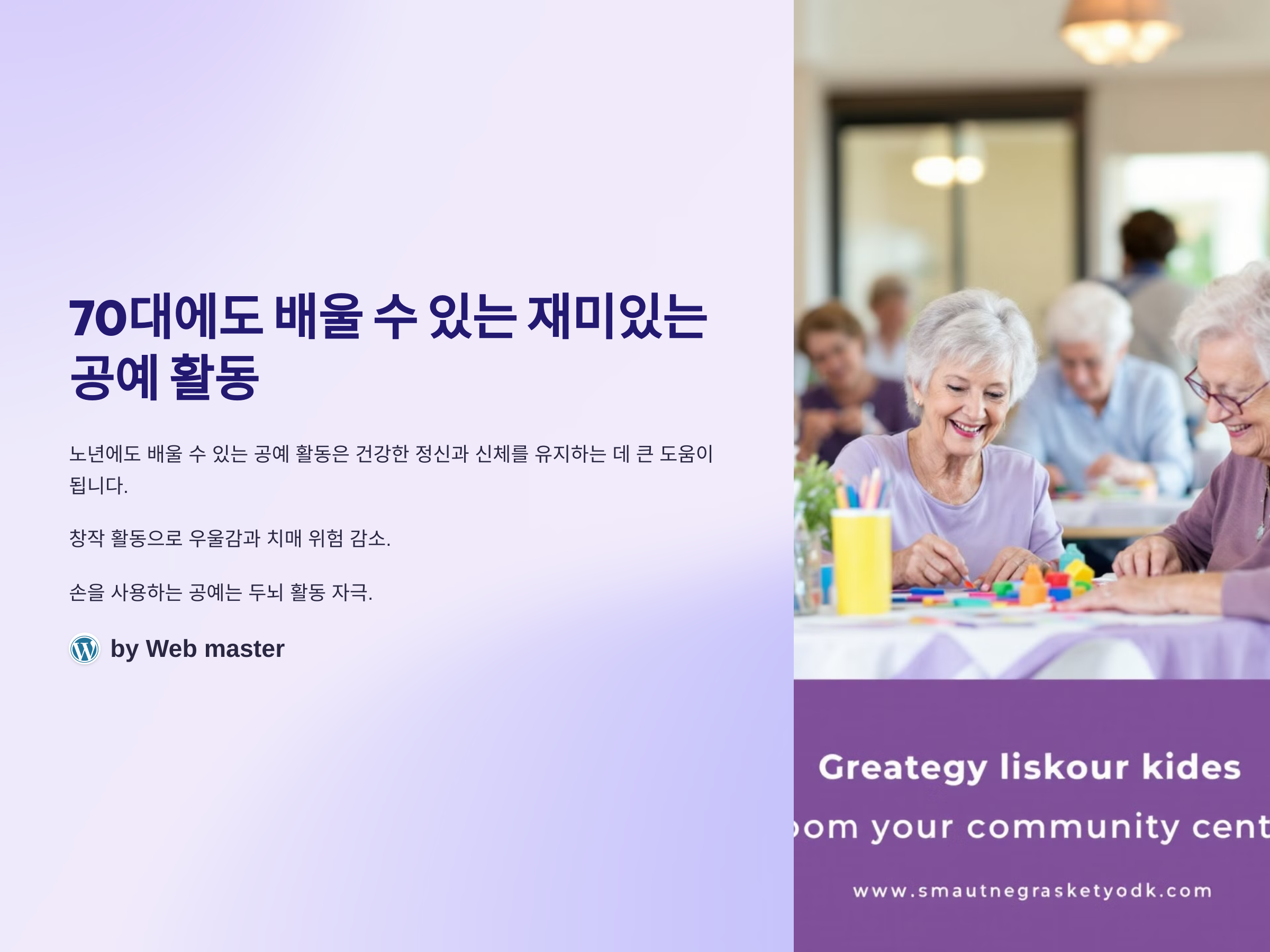 노년에도 배울 수 있는 공예 활동은 건강한 정신과 신체를 유지하는 데 큰 도움이 됩니다. 최근 연구에 따르면 창작 활동을 하는 노년층은 우울감과 치매 위험이 낮아지는 경향이 있으며, 손을 사용하는 공예는 두뇌 활동을 자극하여 집중력과 기억력을 향상시키는 효과도 있습니다. 특히, 손쉽게 시작할 수 있는 공예 활동은 새로운 배움에 대한 즐거움을 제공하며, 성취감을 통해 자존감을 높이는 데에도 기여합니다. 또한, 공예 모임을 통해 새로운 사회적 관계를 형성할 수도 있어 고독감을 줄이는 데 효과적입니다. 이번 글에서는 70대에도 부담 없이 시작할 수 있는 재미있는 공예 활동을 소개하겠습니다.