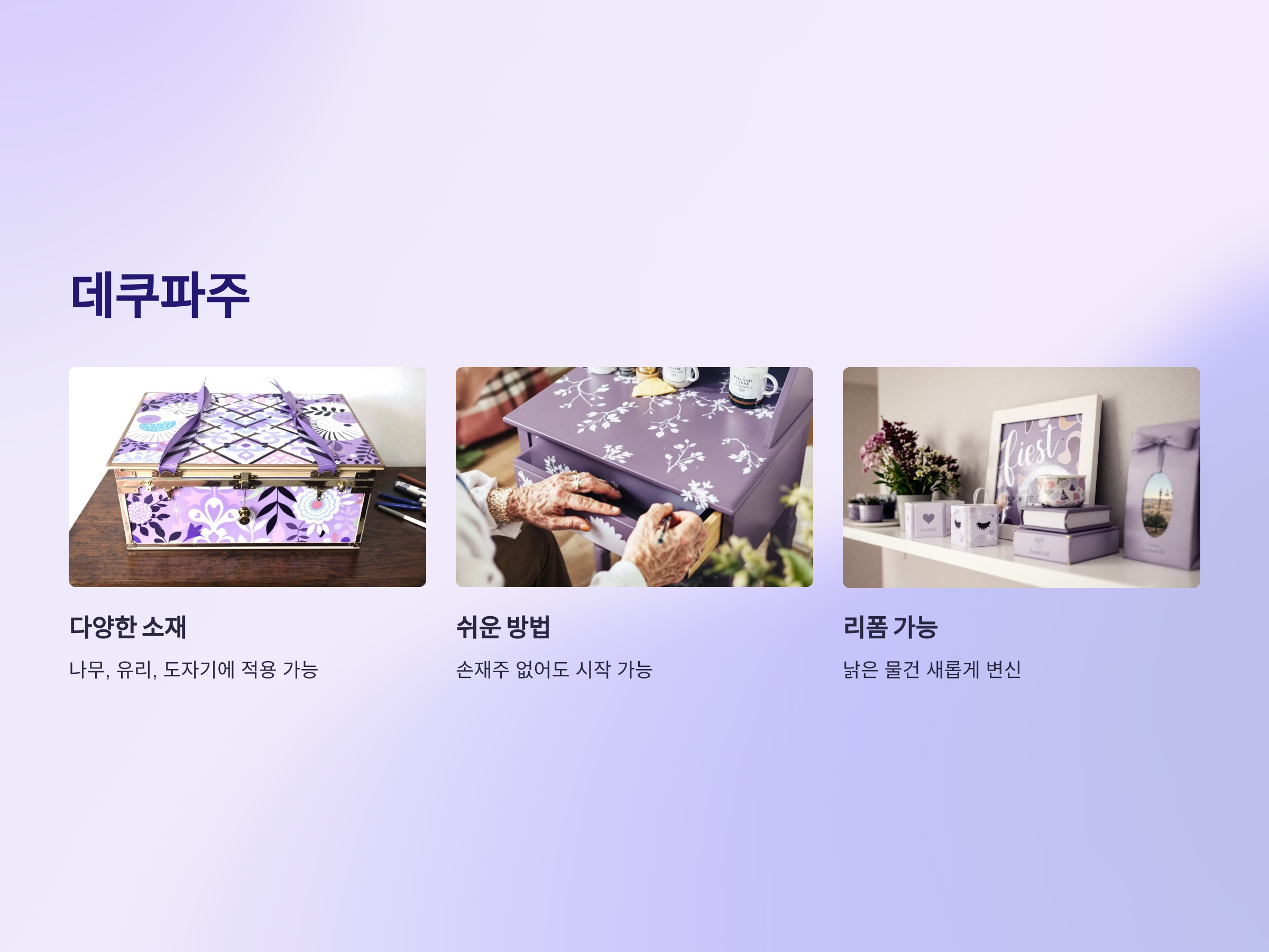 데쿠파주는 종이 조각을 오려 붙여 새로운 디자인을 만드는 공예로, 나무, 유리, 도자기 등 다양한 소재에 적용할 수 있습니다. 쉽게 따라 할 수 있으며, 개성 있는 인테리어 소품을 제작할 수 있어 인기가 많습니다.
