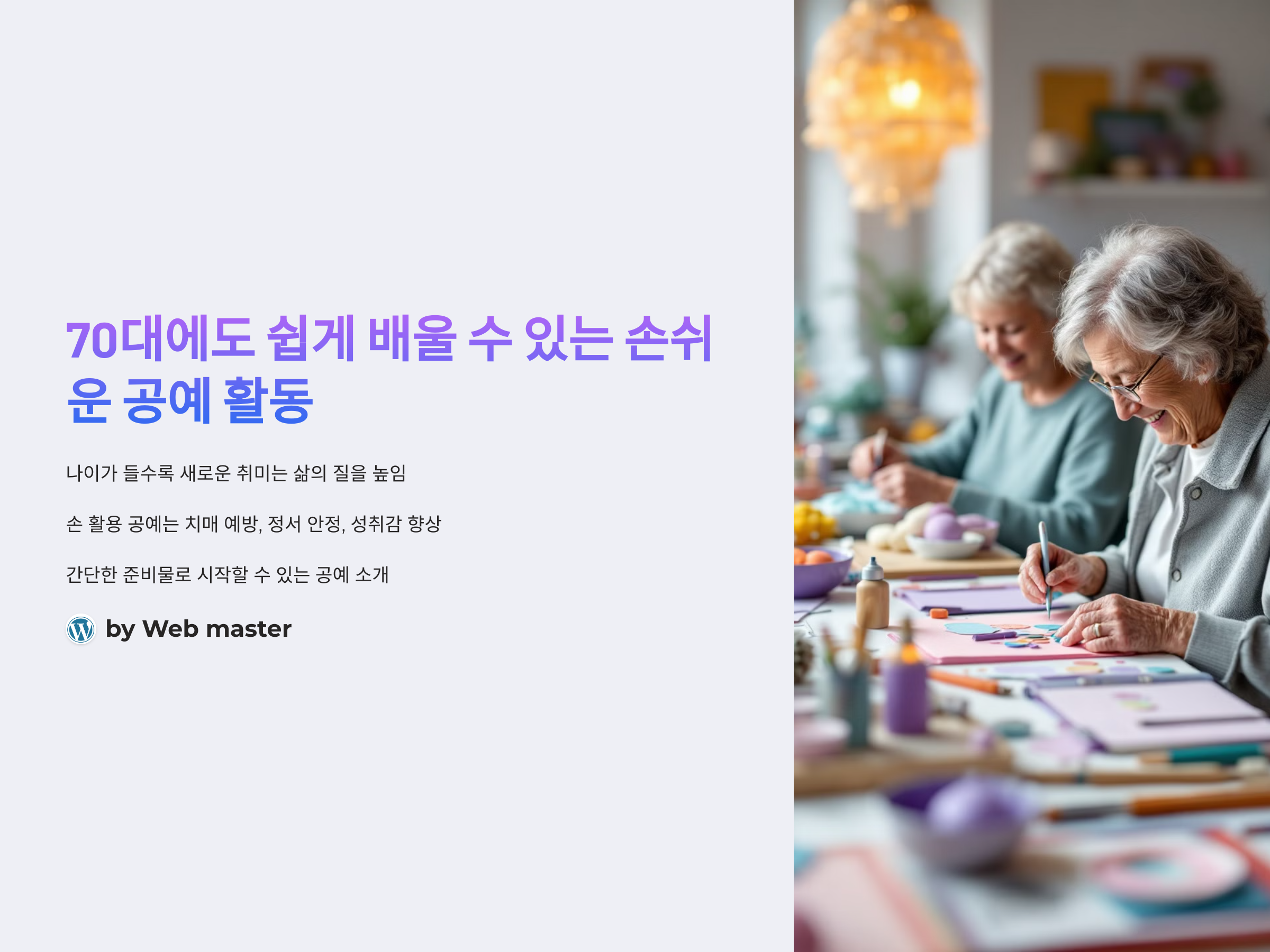 이 글에서는 70대에도 부담 없이 시작할 수 있는 쉬운 공예 활동을 소개합니다. 준비물이 간단하고, 배우기 쉬우면서도 재미와 보람을 느낄 수 있는 공예를 중심으로 추천해 드리겠습니다. 이제 새로운 취미로 삶의 활력을 더해보세요!