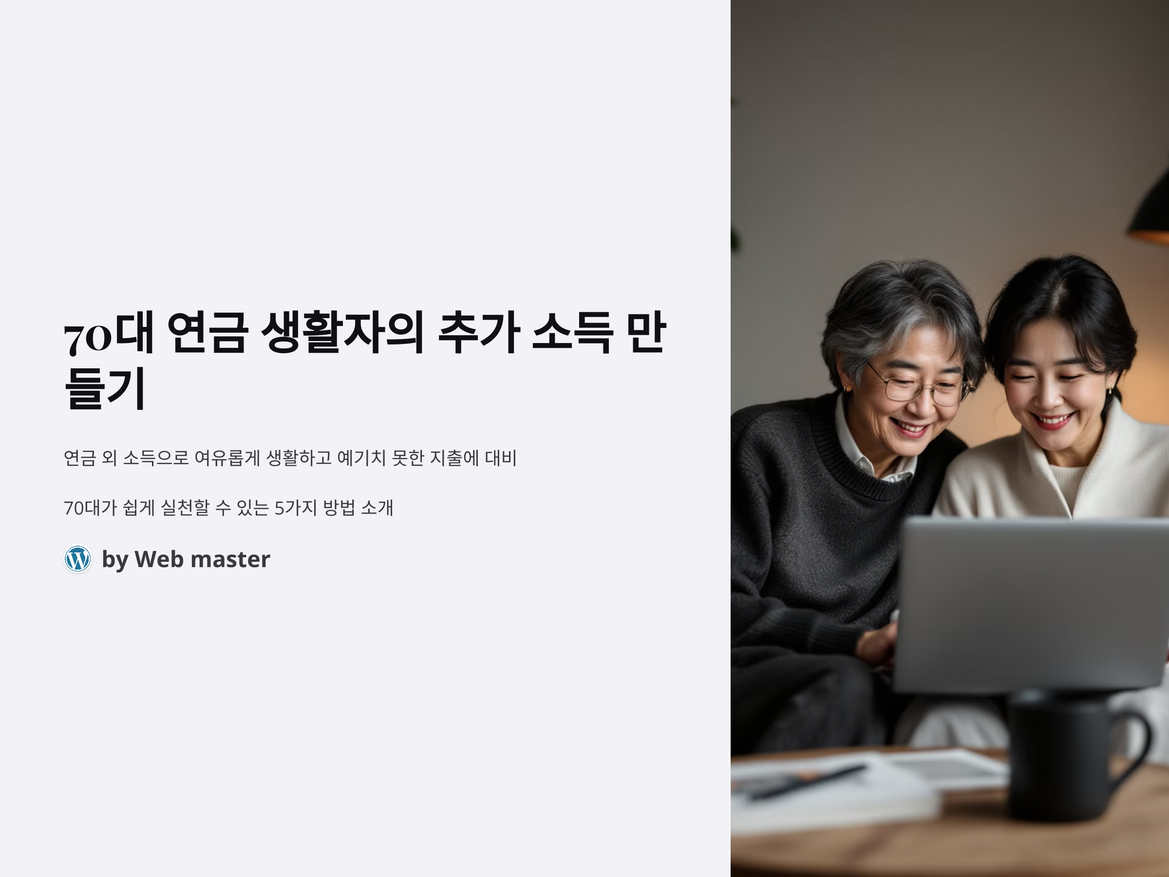 연금을 받으며 안정적인 생활을 하고 있지만, 추가 소득을 만들고 싶은 70대 분들이 많습니다. 연금 외의 소득원이 있다면 더 여유롭게 생활할 수 있고, 예기치 못한 지출에도 대비할 수 있습니다. 그렇다면 70대 연금 생활자들이 실천할 수 있는 방법은 무엇일까요? 이번 글에서는 70대가 쉽게 실천할 수 있는 추가 소득을 만드는 방법을 5가지 소개해 드리겠습니다.