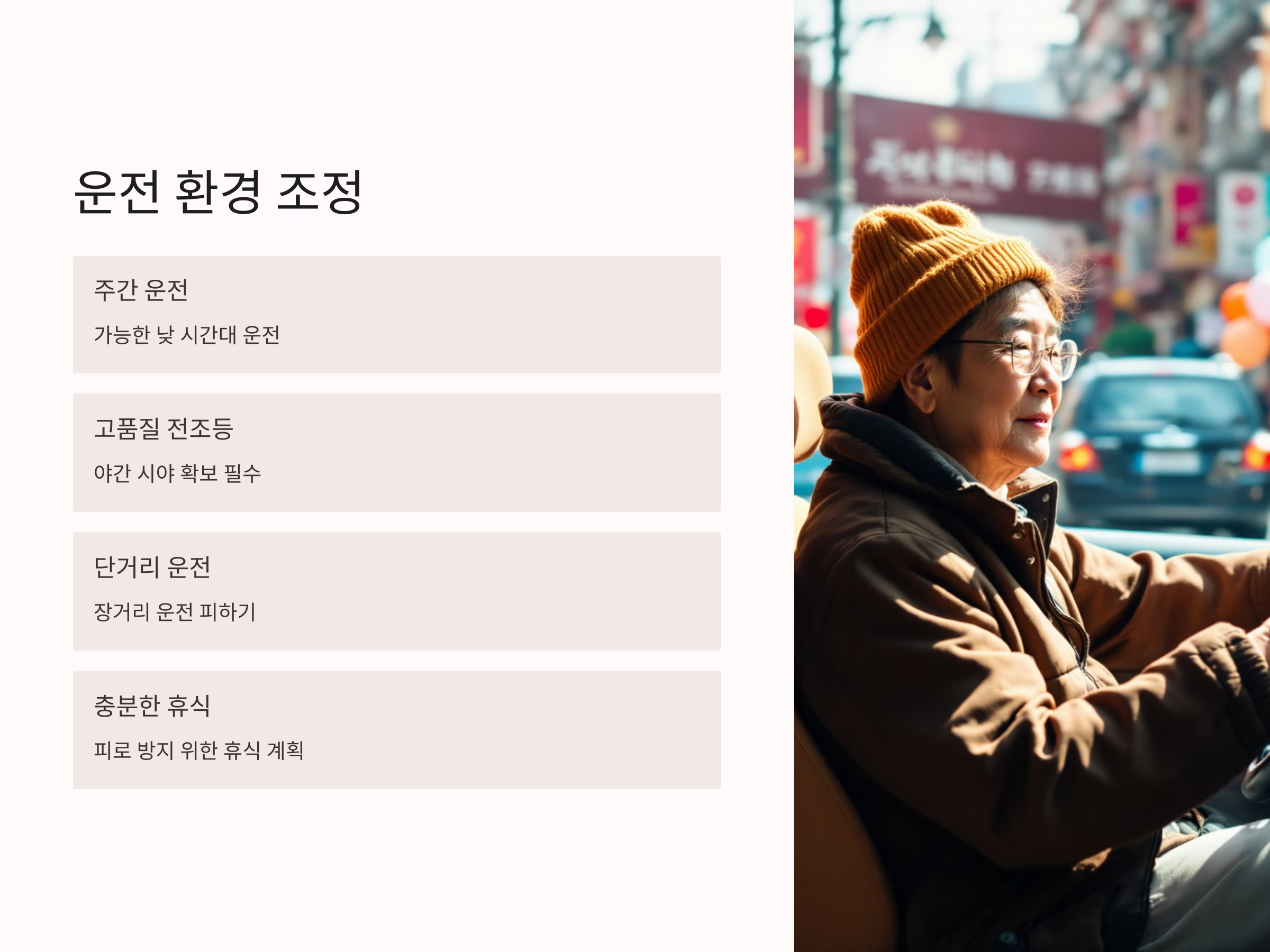 운전 환경의 조정: 야간 및 장거리 운전 피하기