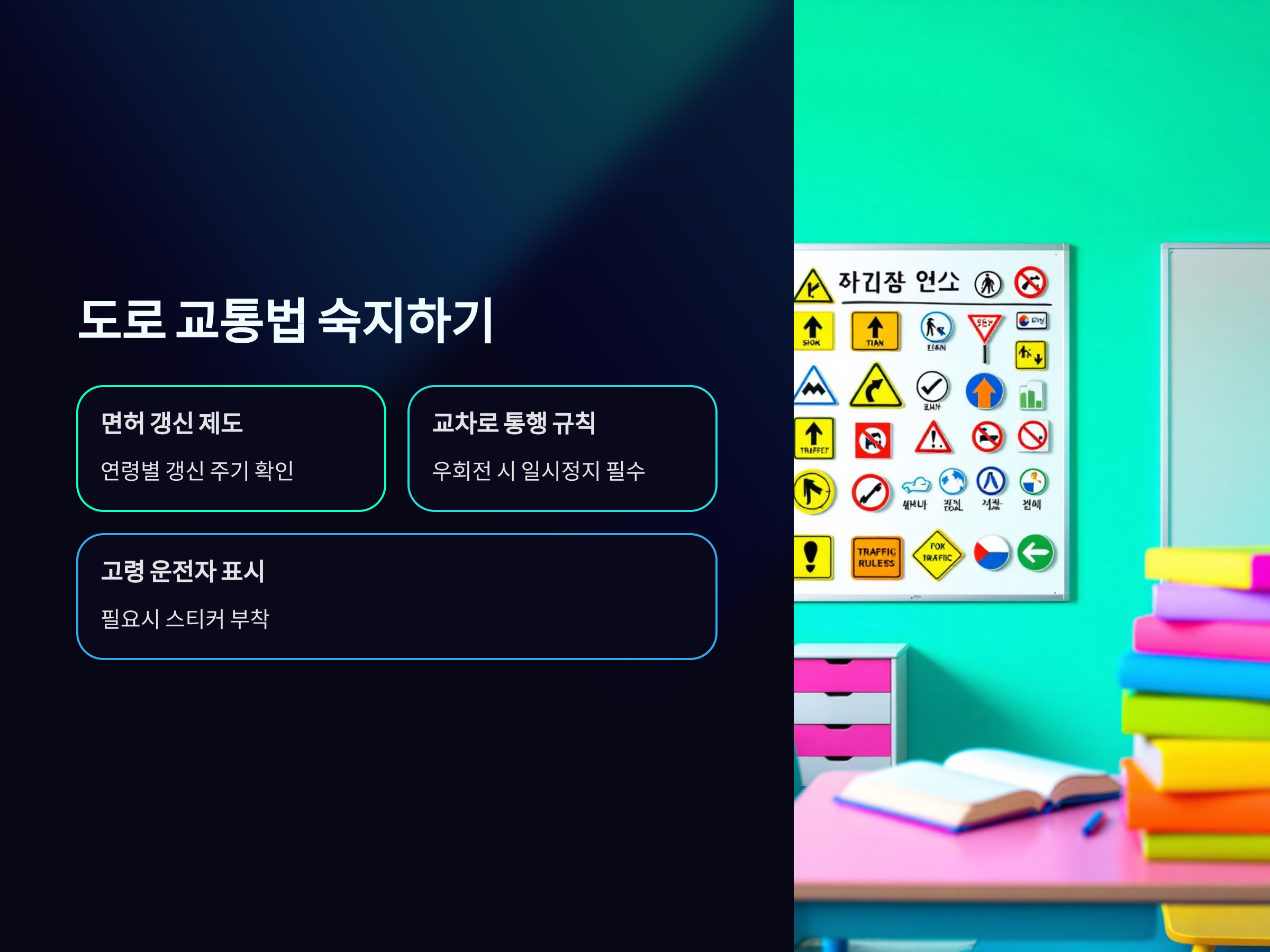 - 우회전 및 교차로 통행 규칙: 최근 도로교통법 개정으로 우회전 시 일시정지가 필수가 되는 등 변화가 많으므로 이를 숙지해야 합니다.