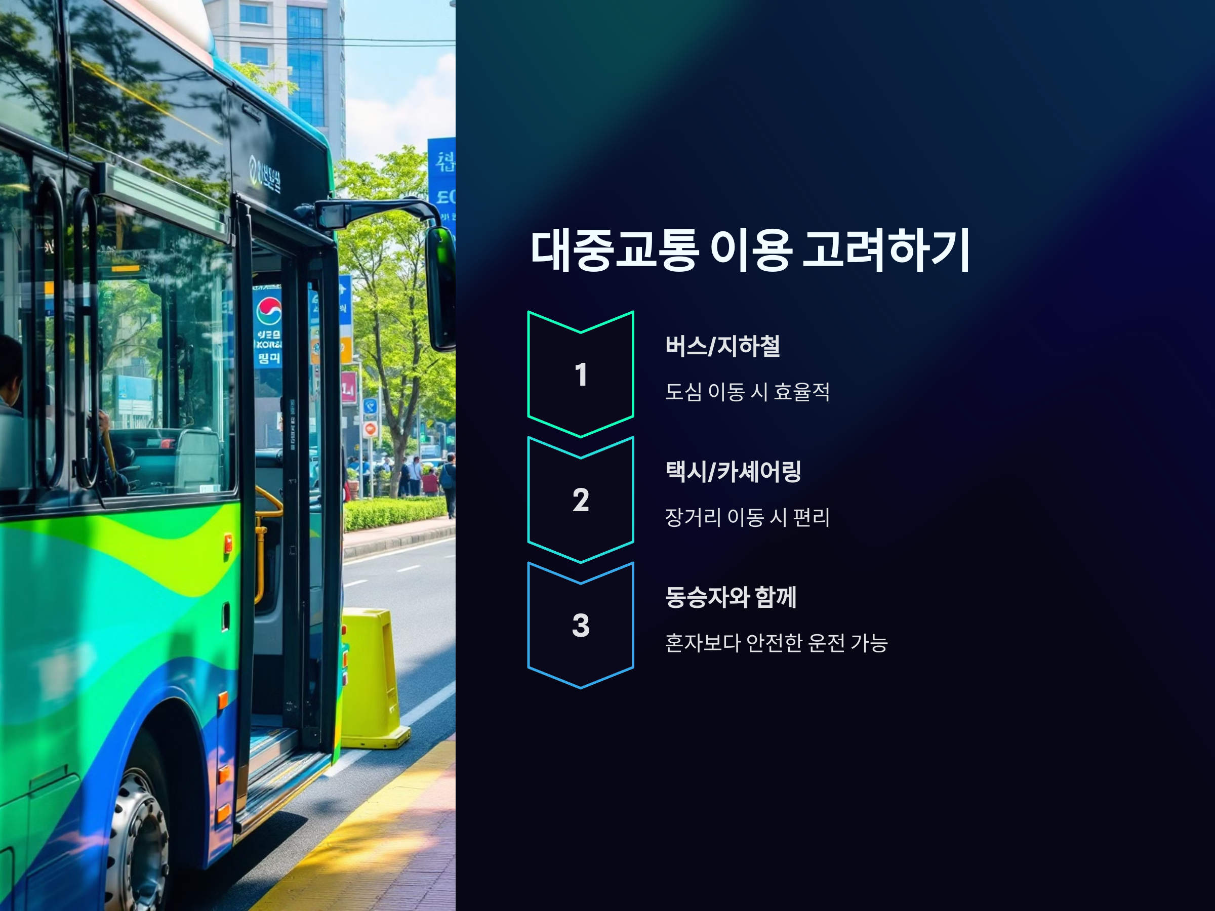 - 버스나 지하철 이용: 도심에서는 대중교통이 더 효율적이고 안전할 수 있습니다.