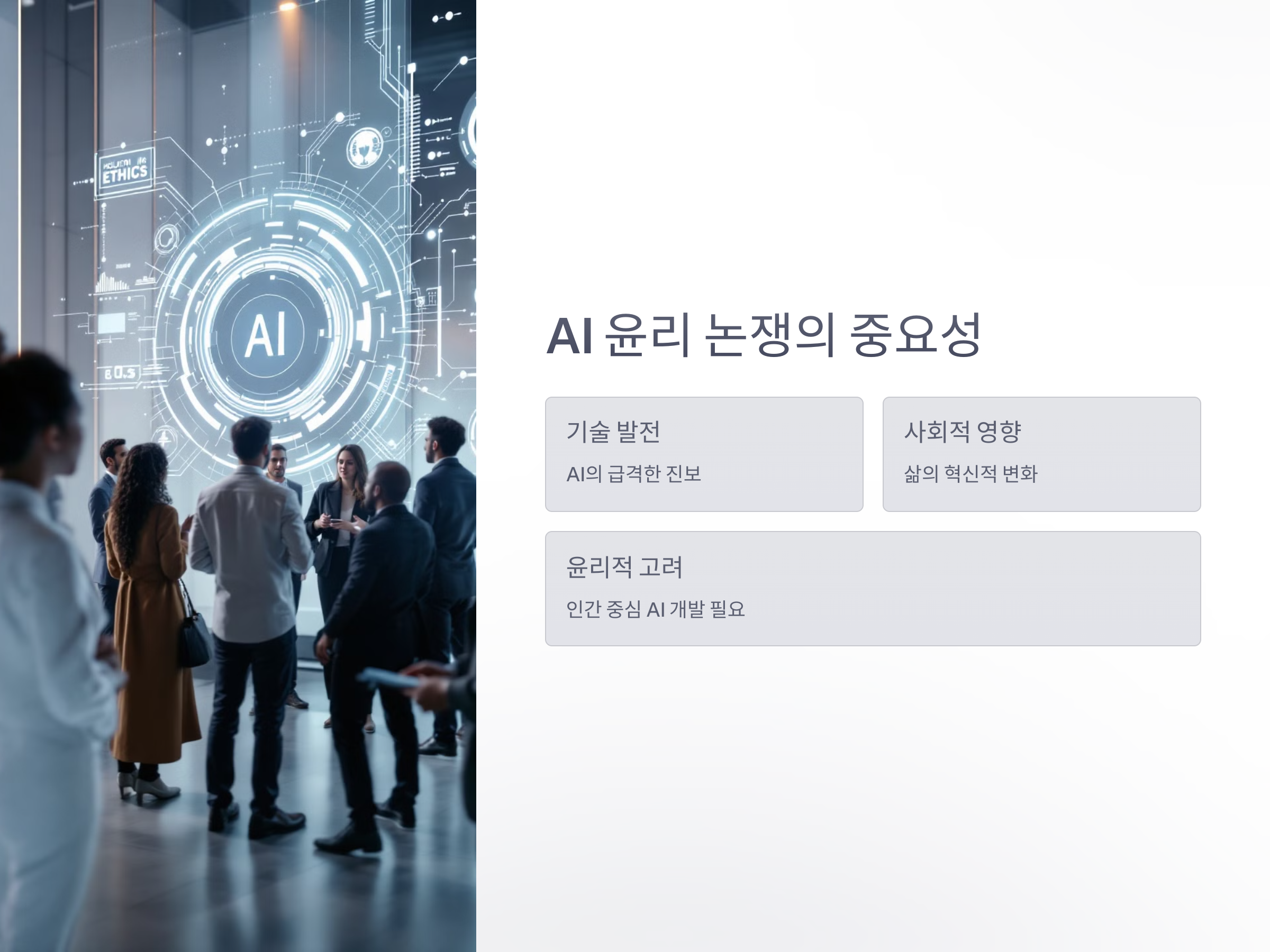인공지능(AI)의 급격한 발전은 우리의 삶을 혁신적으로 변화시키고 있습니다. 그러나 이러한 기술의 진보와 함께 AI의 윤리적 문제에 대한 논쟁도 심화되고 있습니다. AI의 결정이 인간의 존엄성, 프라이버시, 공정성 등에 미치는 영향은 심각한 사회적, 철학적 쟁점으로 부각되고 있습니다. 특히, AI의 자율성 증대와 함께 그 도덕적 지위와 책임 소재에 대한 논의가 활발히 이루어지고 있습니다. 이러한 논쟁은 AI 기술의 발전 방향과 사회적 수용에 큰 영향을 미치고 있으며, 앞으로의 기술 개발과 정책 결정에 중요한 고려 사항이 될 것입니다.