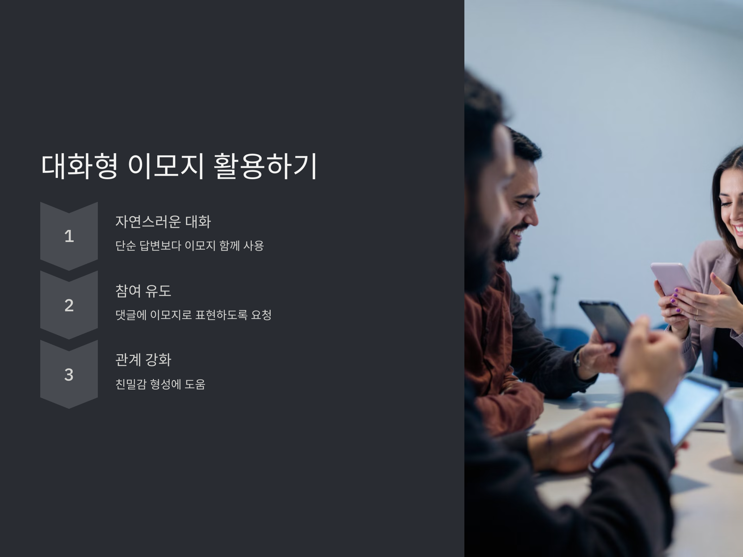 이모지를 대화형으로 활용하면, 더 자연스럽고 친근한 대화가 가능합니다. 예를 들어, "오늘 기분 어때?"라는 질문에 단순히 "좋아요"라고 답하는 대신, 😊와 함께 "좋아요!"라고 답하면, 대화가 더 부드럽고 자연스러워집니다.