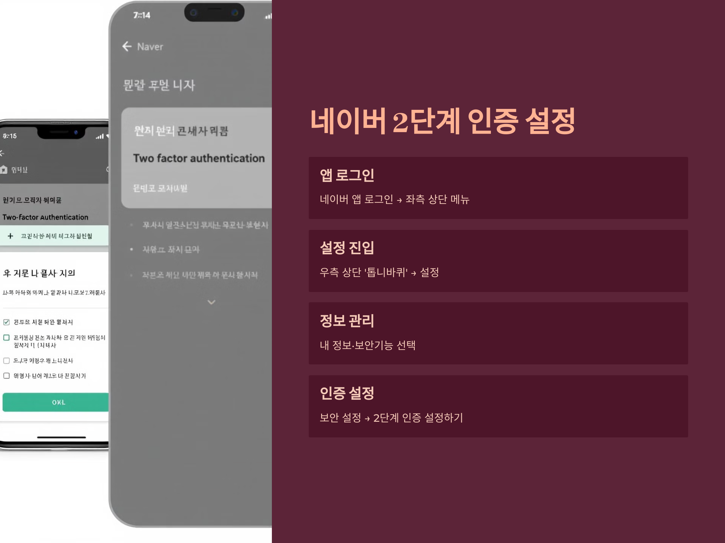 - 2단계 인증 설정: '계정보안' 메뉴에서 '2단계 인증'을 선택하고, 안내에 따라 설정을 완료합니다.