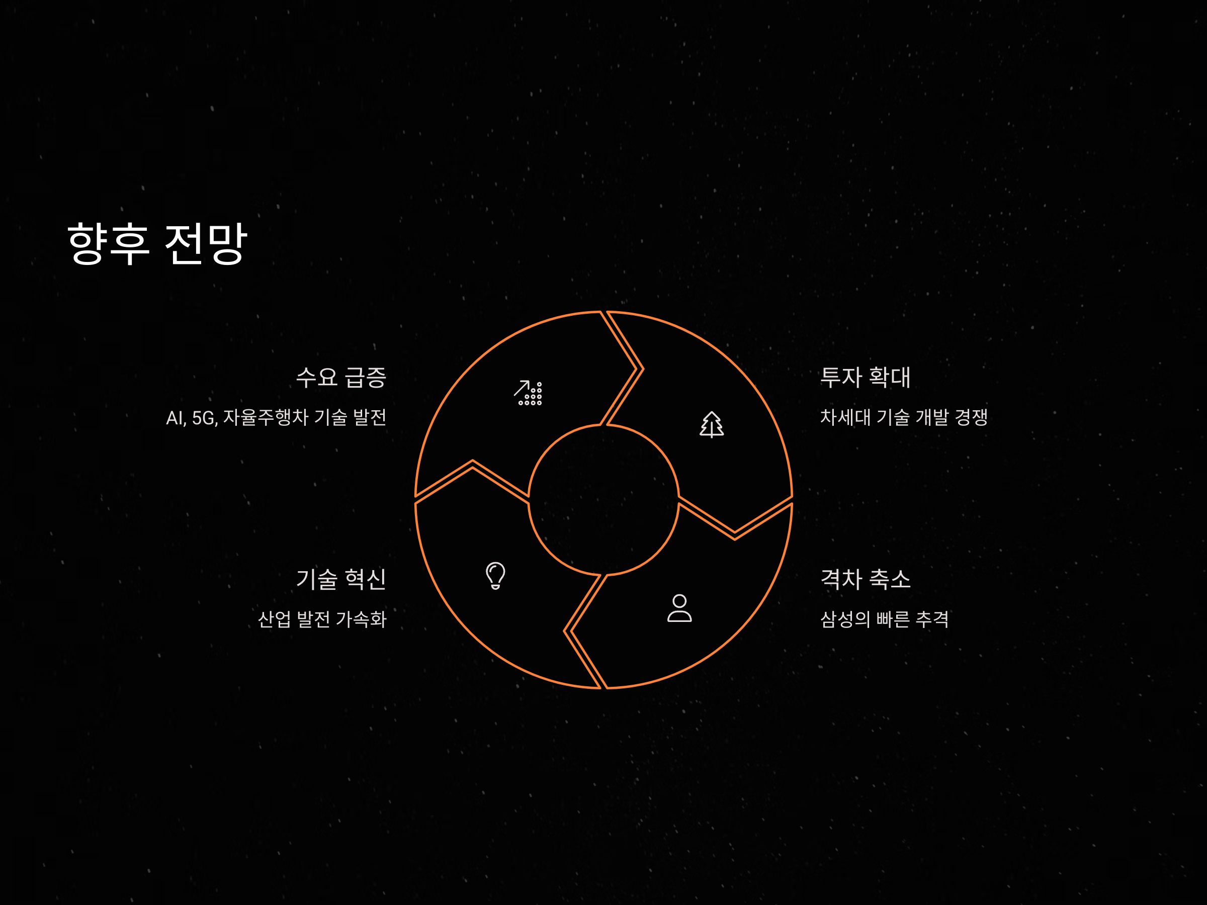 삼성전자는 반도체 산업에서 메모리 반도체의 강점을 살려, 시스템 반도체 분야에서도 빠르게 시장 점유율을 확대해 나가고 있습니다. 최근 삼성은 AI, 5G, 자율주행차와 같은 차세대 기술에 필요한 반도체 제품을 선보이며, TSMC와의 격차를 좁히기 위해 기술 개발에 집중하고 있습니다.
