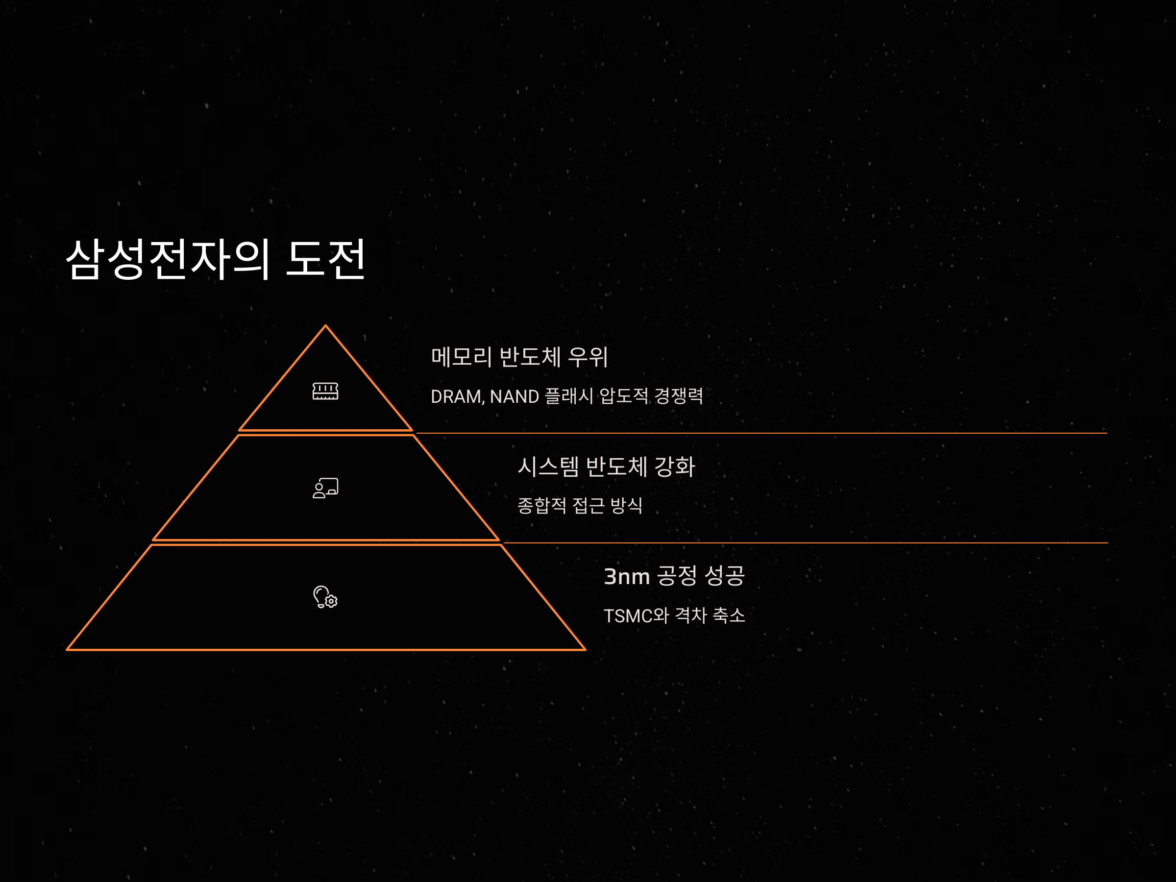 삼성은 3nm 공정에서 독자적인 기술을 적용한 'GAA(극한적인 게이트 결합)' 기술을 통해 전력 효율성을 크게 개선했으며, 이를 기반으로 향후 더 작은 공정으로의 전환을 목표로 하고 있습니다. 삼성전자는 TSMC와의 경쟁에서 기술력뿐만 아니라, 자체적인 제품 설계와 제조 능력을 결합하여 더욱 높은 경쟁력을 확보하고 있습니다.